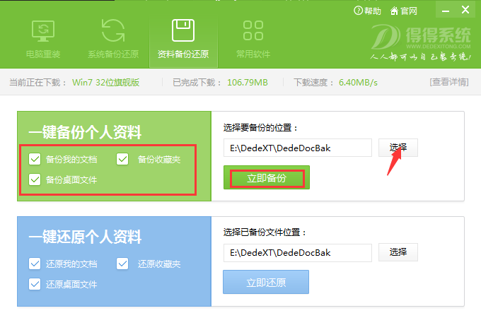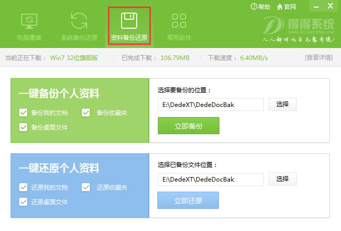 得得一键重装系统文件备份与还原教程
