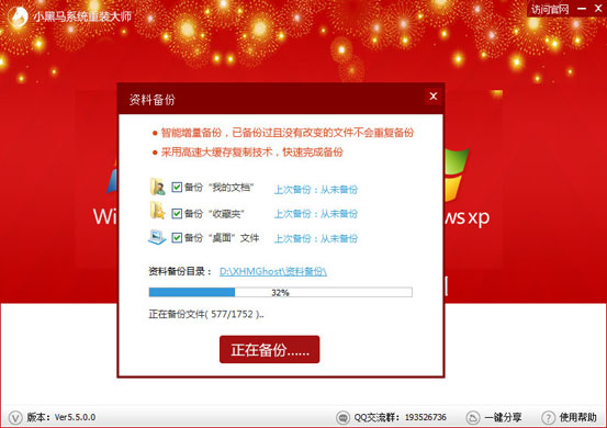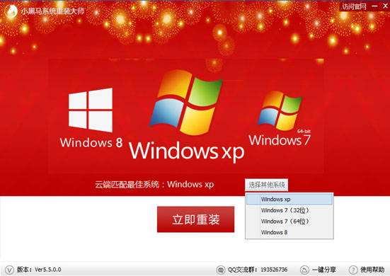 小黑马重装系统软件是一款绿色版的简单好用的系统重装软件,该软件支持XP、win7、win8系统重装,一键重装系统,找到最适合你的系统,简单快速方便,还提供一键备份还原工具,保障数据的丢失,赶快下载小黑马重装大师吧!保证您电脑系统的正常运行。
