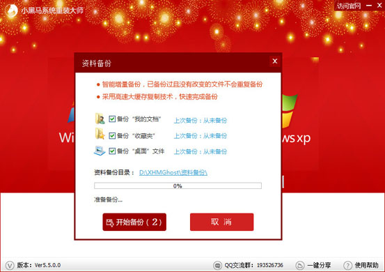 04第四步选择要备份的文档,收藏夹,桌面文件,点击“开始备份”或者等待10秒后就开始备份了(如图5),如果不需要备份,就点击“取消”