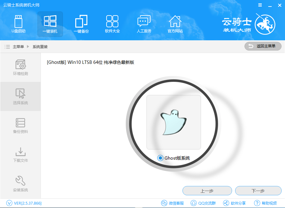 06第六步选择安装系统,云骑士将为用户自动全程安装,用户只需等待云骑士下载完系统即可。