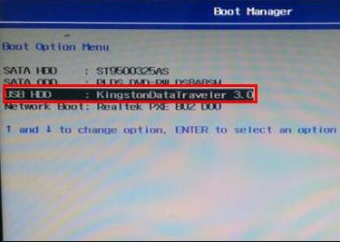 2、进入bios启动项选择界面后,通过键盘上的上下方向键将光标移至带有usb信息的选项,按回车键确认即可,如下图所示: