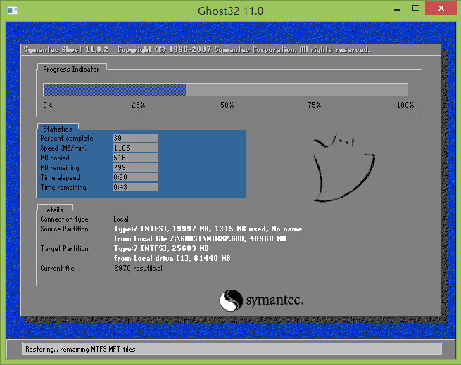 06第六步耐心等待ghost xp系统的还原过程,直到电脑自动重启,重启之后用户们便可以拔出u盘让系统自动安装。