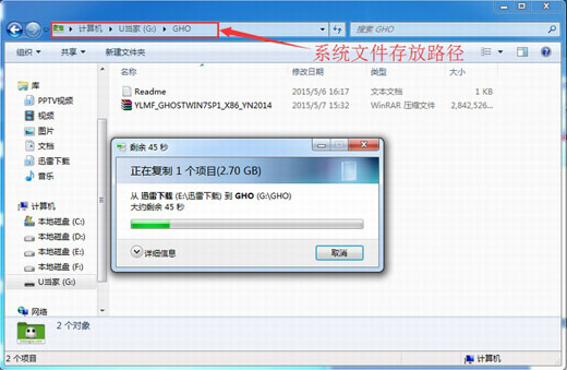 01第一步用U当家制作完U盘启动盘以后,打开U盘将下载好的系统镜像文件复制到“GHO”目录