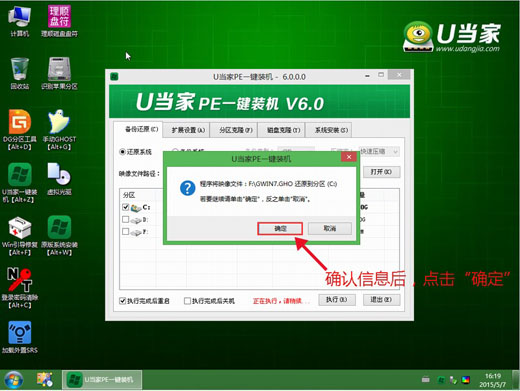 08第八步这时会弹出确认信息对话框,确认好信息后点击“确定”以后开始安装系统,安装过程电脑会自动重启数次。(如果重启以后还进入PE系统,请关机拔掉U盘,在开机继续安装,直至进入系统桌面。)