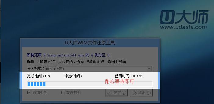 02第二步加载Win8pe,这里小编提醒一下网友,U大师在启动win8pe时,需要加载到虚拟磁盘,4GB内存双核CPU的新电脑加载一般比较快,大概40秒左右,老式电脑或者一体机1-2GB内存大概2分钟左右,加载完成后,自动进入到WIN8PE系统界面。(千万不要等不及,然后就乱按电脑键盘,这样容易出故障)