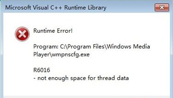 有一用户在开启win7纯净版系统的时候,开机时出现了“wmpnscfg.exe R6016”的错误提示,怎么回事呢?win7纯净版系统开机提示“wmpnscfg.exe R6016”怎么办?