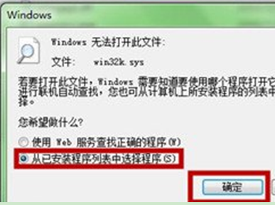 3、在弹出的对话框中将选项选择“从已安装程序列表中选择程序”,点击“确定”。