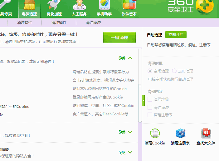 1、打开360安全卫士,点击“电脑清理”。