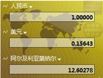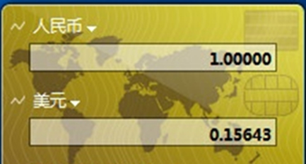 2、添加完成之后就会看到一个小窗口,默认情况下,货币小工具中会显示两栏,在下拉列表中分别选择需要换算的货币类型,就能够看到汇率了;