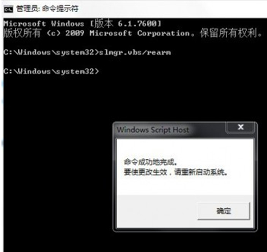 2、在命令行中输入“slmgr.vbs/rearm”的命令延长使用期30天。