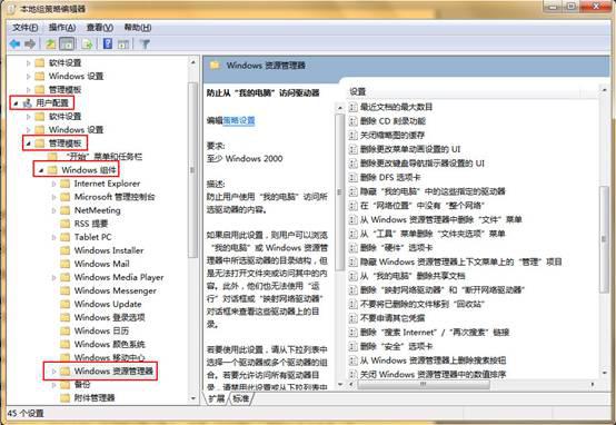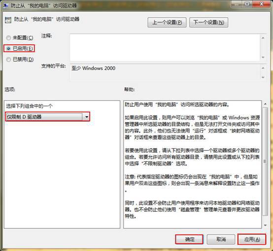 Win7下限制从计算机中访问某个磁盘驱动器的设置方法