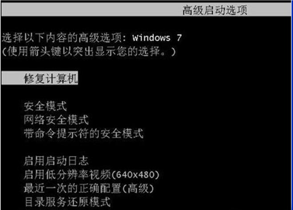 重新启动系统, 在启动时按住 F8,便能够在“高级启动选项”中看到“修复计算机”的选项了。