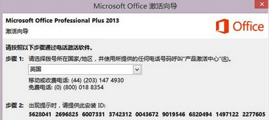 当联网激活后,提示 “产品密钥的激活次数已达到了最大软件许可允许值”时使用,当遇到这种情况时点击“上一步”返回选电话激活选项,“步骤1” 选“英国”,将9组安装ID抄写一排留言,待我回复确认ID后,再录入前述确认ID ,点击“下一步”即可联网激活。如果出现“产品密钥无效”提示的话,则需立即更换key。
