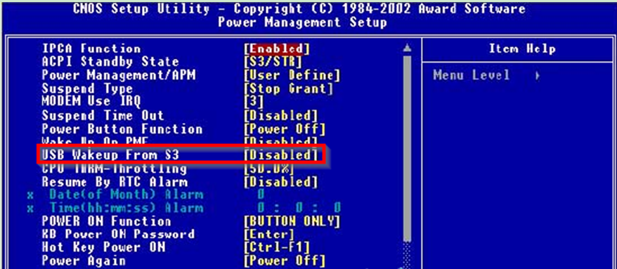 2、找到“S3 KB Wake-Up Function”或含义相似的选项,用鼠标的方向键移动到该选项处,将其设置为“Disable”即可,那么USB鼠标需要将“USB Wake-Up From S3”设置为“Disable”。
