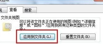 2、在弹出的文件夹选项的窗口中,切换到“查看”标签页,点击下方的应用到文件夹即可。