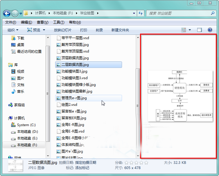 3、预览窗格点选完毕后,随便选择一张图片,就可在开启的win7预览窗格中看到该图片的效果了。
