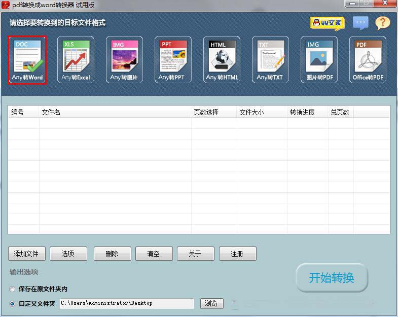 1、 打开迅捷PDF转换成Word转换器,选择转换模式:PDF转换器软件支持八大转换模式,用户可根据自己的需求选择相应的转换模式,小编就以“any转Word”模式为例,给大家演示操作。