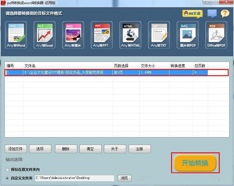 3、输出选项。PDF转换器软件默认情况下,将转换出来的文件保存在原文件夹内,或自定义文件夹存储路径,最后点击右下方“开始转换”即可顺利完成转换了。