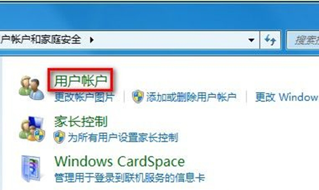2、在 弹出的控制面板中依次点击“用户账户和家庭安全--用户账户”。