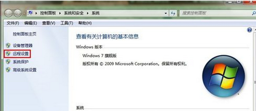 1、依次点击“开始”——“控制面板”——“系统和安全”——“系统”——“远程设置”。