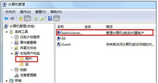 1.右键计算机图标,选择“管理”,在打开的“计算机管理”界面中选择“本地用户和组——用户——选择administrator账户”。