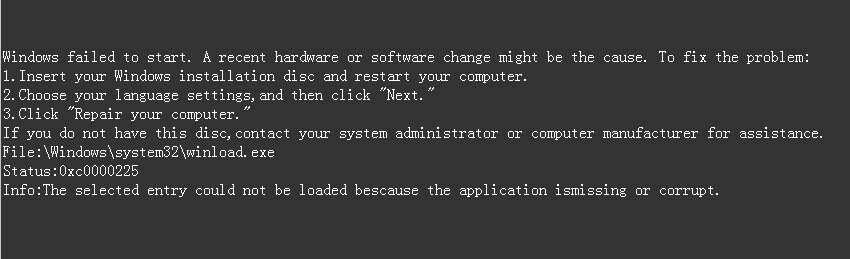 Win7纯净版系统开机黑屏错误0xc000025的解决方法