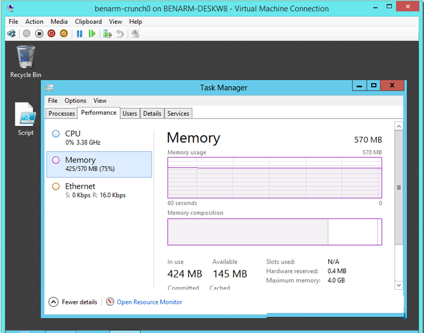 查看虚拟机目前有多少可用内存,在guest操作系统任务管理器中便可查看可用内存。