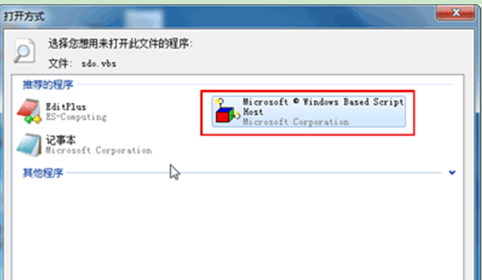 3、检查注册表HKEY_CLASSES_ROOT\VBSFile\Shell\Open\Command默认值,应该是"%SystemRoot%\System32\WScript.exe" "%1" %*,那么请手动更改 .vbs 文件的打开方式,将其改为C:\windows\System32\文件下的 WScript.exe 程序。