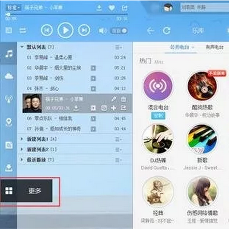 1、首先打开酷狗音乐,点击左下角的“更多”选项。