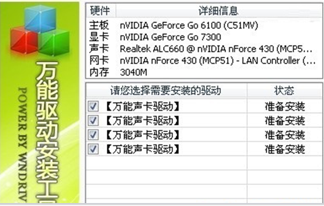 2、双击“万能声卡驱动”软件后,会自动检测系统中的有关设备。