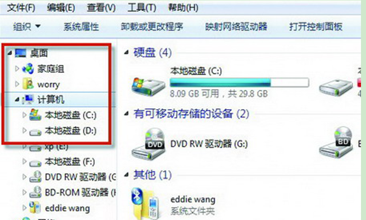 通过以上设置后,资源管理器就会以各磁盘的模式显示了。建议将平时需使用的图标保留,方便使用。