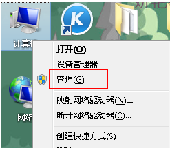 一、桌面上找到“计算机”的图标,点击右键单击“管理”键值,开启“计算机管理”的菜单。