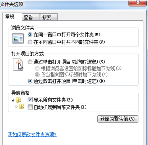 在库管理界面中点击“工具”选择“文件夹选项”,打开“文件夹选项”的属性窗口。