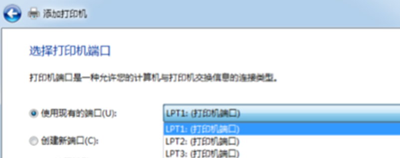 2、选择添加打印机,选择端口,点击下一步。