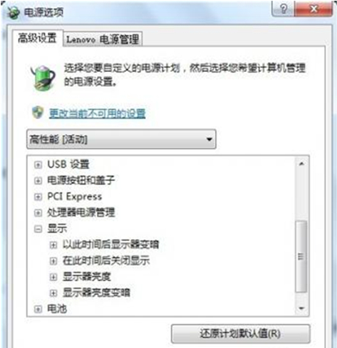 点击更改高级电源设置