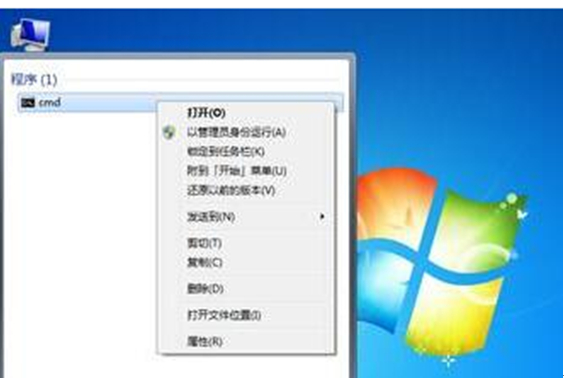 1、在win7系统中点击开始菜单,在搜索框中输入cmd,选择“以管理员身份运行”。