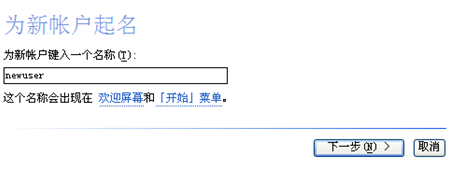 4、在弹出地创建新账户界面设置新账户的名称.输入后点击下一步,再点“创建账户”。
