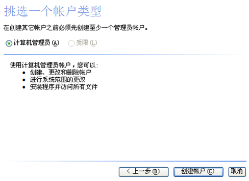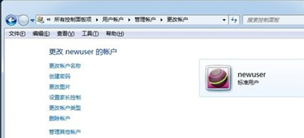 7、可对刚刚创建的用户进行更改账户界面,比如修改账户类型、录密码等操作。