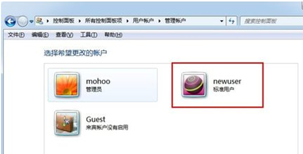 6、在控制面板账户项目中出现刚刚新建立的账户。