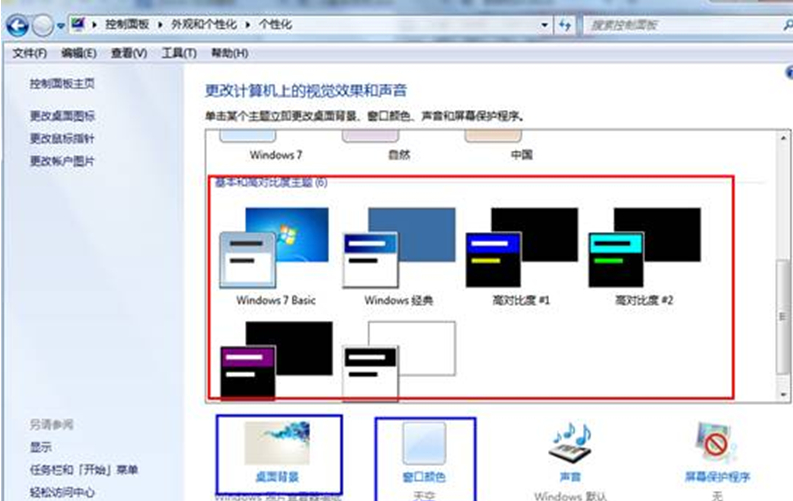 3、 主题更改时在底部也会有一个窗口颜色设置的选项,用户根据自己的习惯来设置就可以了,不过小编在此建议大家最好是根据自己的电脑的分辨率来调整,这样更能保证以后不会同样地发生以上的错误。