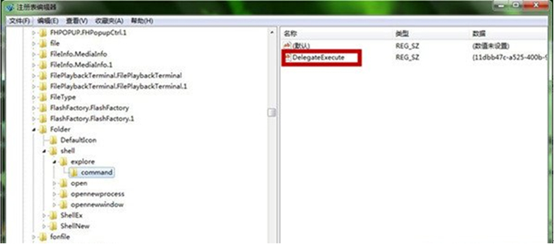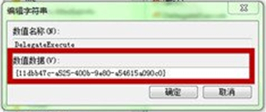 4、在打开的DelegateExecute数值数据栏中检查一下里面的内容是否为 {11dbb47c-a525-400b-9e80-a54615a090c0}。如果不是,请输入替换内容{11dbb47c-a525-400b-9e80-a54615a090c0} ,再点击“确定”保存后退出注册表即可。