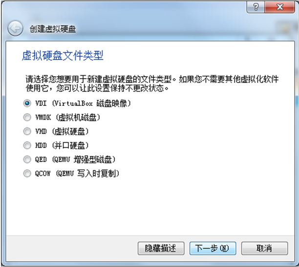 5、设置硬盘虚拟文件类型,选择默认即可。