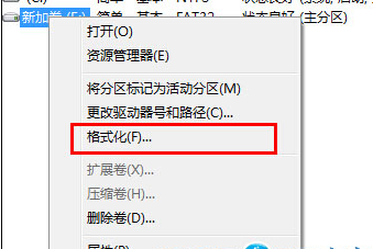 步骤三:选择你要格式化的磁盘,右击选择格式化。如图3