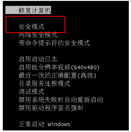 步骤一:开机的时候快到滚动条前一步按一下F8,选择进入安全模式。如图5
