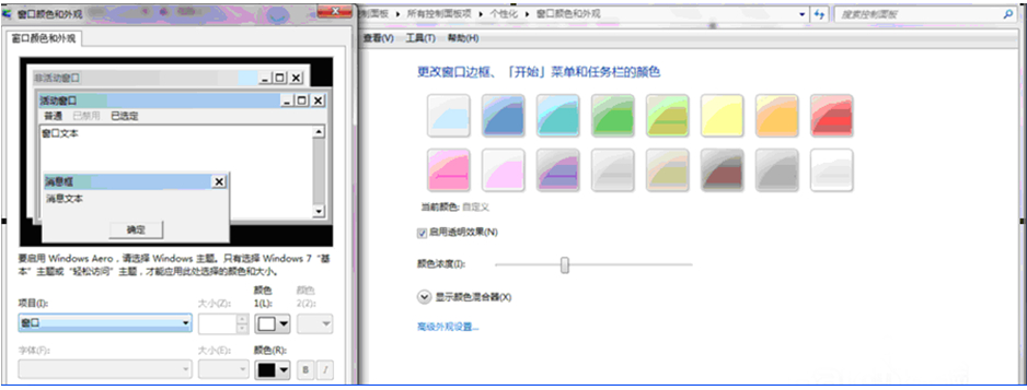 2、打开高级外观设置的窗口后将项目栏下边的桌面改成窗口。然后在右边颜色的下拉菜单中选择其它。