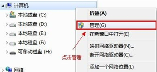 1、点击开始——打开计算机——右击计算机,点击管理,打开计算机管理窗口。