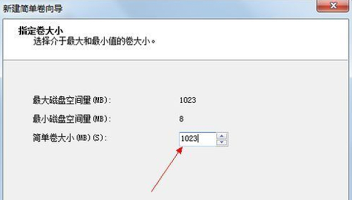 5、打开新建简单卷向导,一路下一步,在简单卷大小里填写要新建磁盘的大小。