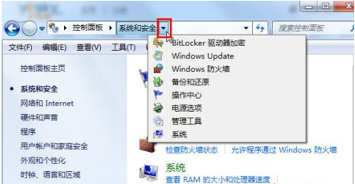 2、妙用地址导航快速打开相应程序的技巧: Win7系统控制面板的地址导航功能,可快速切换到相应的分类选项或指定需要打开的程序,用户只需点击地址栏每类选项右侧向右的箭头,该类别下所有程序列表便会显示出现,然后从里面点击需要的程序便可快速打开相应程序。