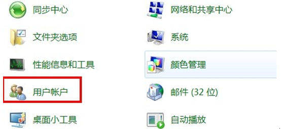 1、首先进入控制面板,在控制面板功能项中选项用户账户;