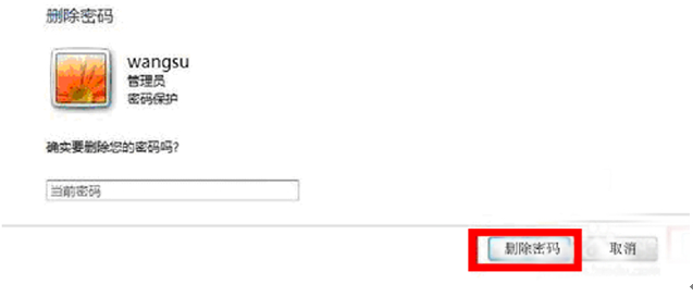 3、删除密码需要输入当前设置的密码,输入密码后点击删除密码按钮,删除成功,在账号上的删除密码键就不见了,只有创建密码项。